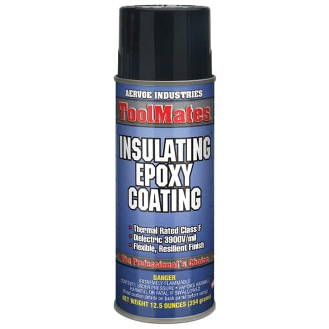 Aervoe® Insulating Epoxy Coating is a tough, yet flexible coating for insulating coils, transformers and other electrical components. Good adhesion and high dielectric strength makes this product especially useful for coating turns on electrical windings that will be exposed to extreme moisture and oils. It penetrates thoroughly and air-dries tack free in 15 min, hardens in 1 hr. Superior to lacquers and acrylics. Epoxy Ester resin is rated Thermal Class F.