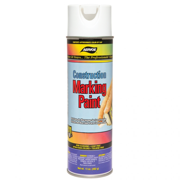Aervoe® 255 Construction Marking Paint, 20 oz Container, White, 548 Linear ft Coverage, 8 hr Curing
