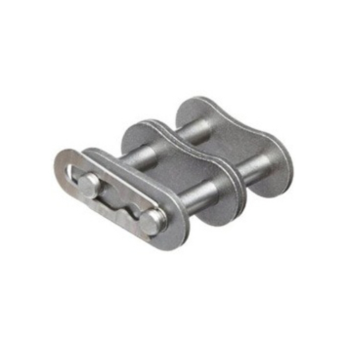 Roller chain connecting link for joining or repairing roller chain.