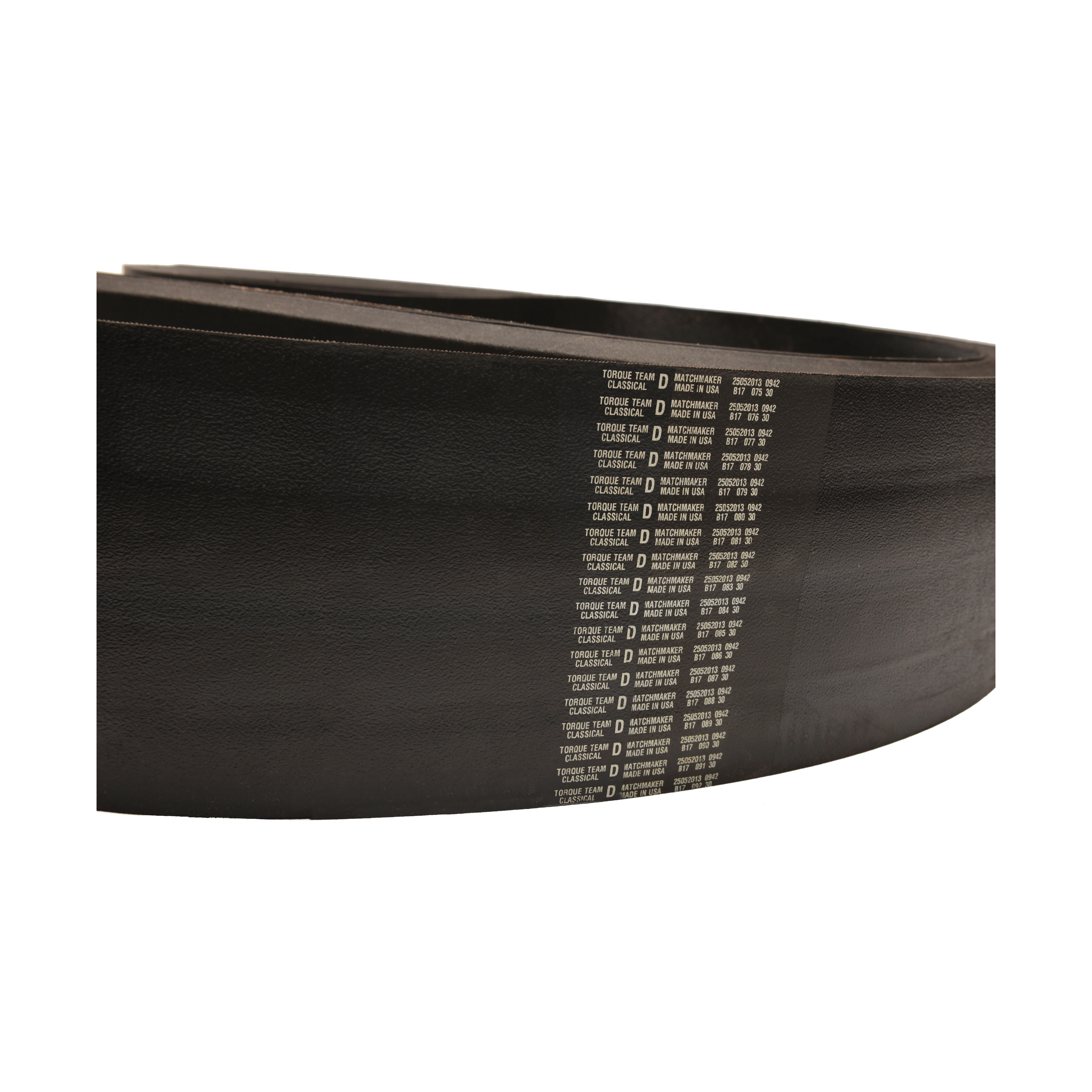 HY-T® Torque Team® classical belts are built with strong Vytacord® tension members. This provides the high-strength, high-horsepower rating capacity needed to effectively transmit drive power. Vytacord® tension members are tough enough to tolerate the misalignment that quickly destroys belts. The Vytacord® material has a very good dimensional stability. Drive performance is consistent, reliable and predictable over the life of the belt. We then add a tough oil and abrasion resistant fabric backing to provide maximum longitudinal flexibility and lateral strength to withstand the dynamic forces acting within a joined belt. The backing also has special adhesion characteristics that enable it to bond inseparably to the V-sections to maintain the unitary integrity of the belt. The cushion in both envelope and cut-edge construction is fiber-loaded. Cut-edge constructions have a fiber-loaded, latest-technology compound that contributes heat and oil resistance and strength.