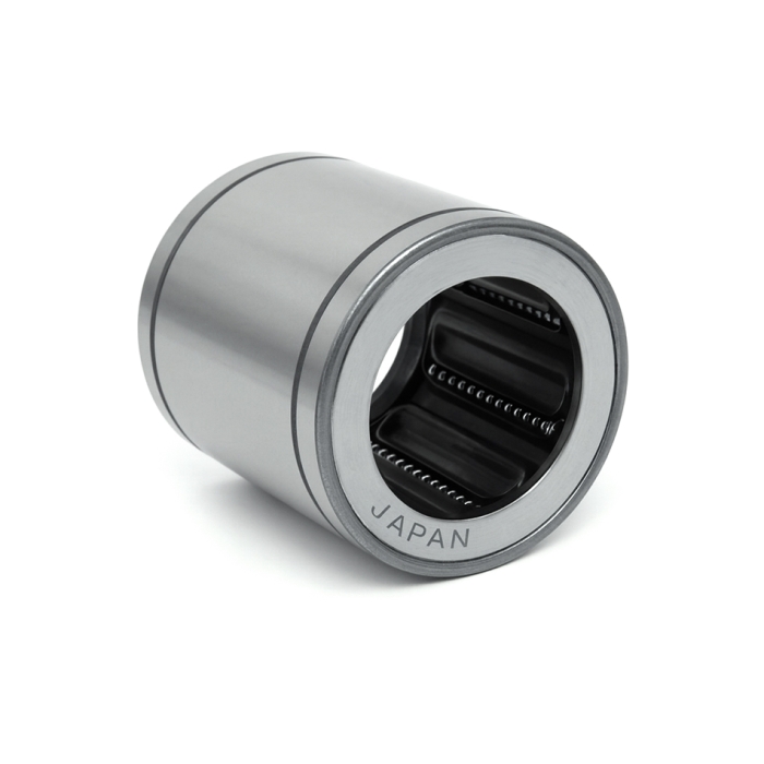 Linear Bushings (LM) feature a high precision design comprised of a rolling guide that travels along a shaft to achieve unlimited linear motion. A specialized retainer is used to accurately guide interior steel balls for low friction and highly stable linear motion.