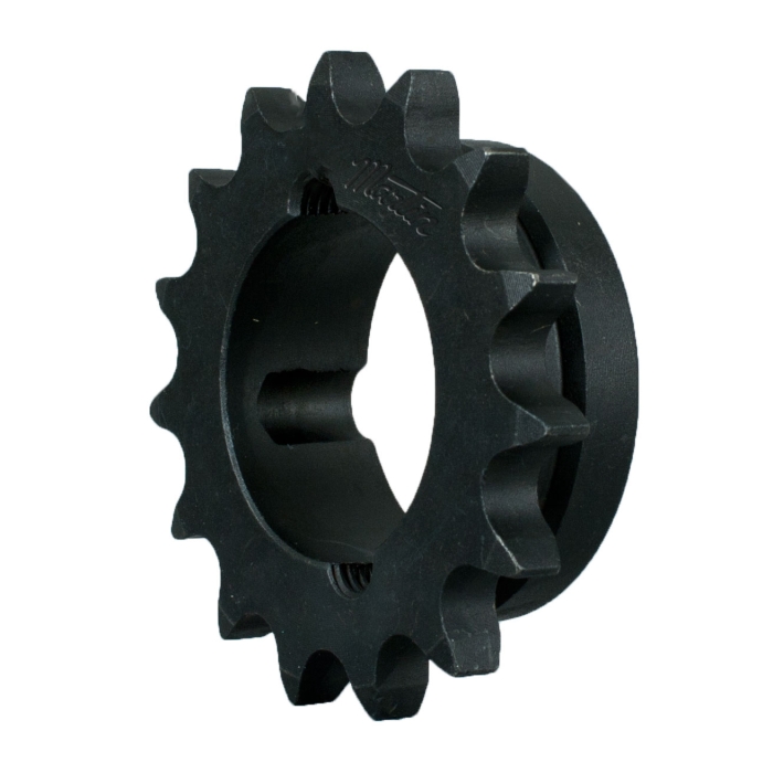 A metric taper bushed sprocket is a sprocket where a tapered bushing is bolted into the taper bore that is machined in the sprocket. When installed this bushing is compressed onto the shaft providing a tight grip. Taper bushed sprockets have a tapered bushing bolted into a taper bore with hex head set screws instead of bolts.