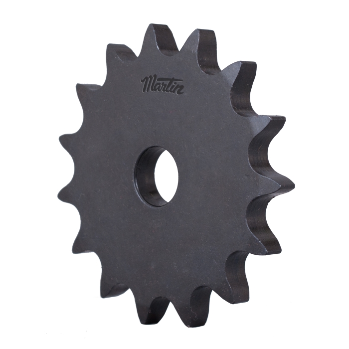 Martin 10A14 Type A Single Strand Solid Stock Bore Roller Chain Sprocket, 12 mm Dia Bore, 81.025 mm OD, #10B-1 Chain, 14 Teeth, 15.875 mm Pitch, Steel