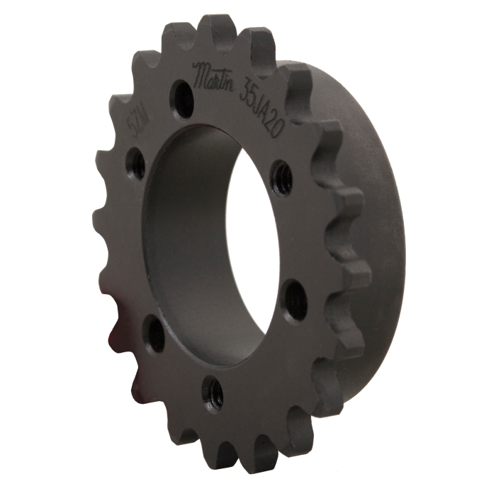 Martin Roller Chain Sprocket, Type B Single Strand Solid Stock Bore, 1-1/4 in Bore, 3.193 in OD, #35 Chain, 25 Teeth, 3/8 in Pitch, 2.992 in Pitch Diameter, 2 in Diameter Hub, 1-1/4 in Length Through Bore, QD® JA Bushing, Steel