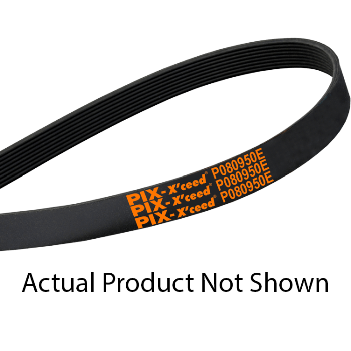 PIX belt, manufacturer part number 250J6. Designed for power transmission drives using standard sheaves/pulleys. Specs: Type: Ribbed Poly-V Belt; Section: J (Poly-V/Ribbed); Profile: J; Ribs: 6; Length code: 250.