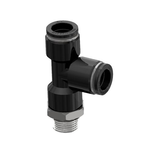 Pneuforce®, PD1/2-N3, Male Run Tee, Fitting, 1/2 in x 3/8 Nominal, Tube x MNPT End Style, 7/8 in Hex, 14.7 to 150 psi Pressure, 32 to 140 deg F, Plastic