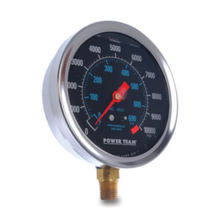 Power Team® Pressure Gauge, Heavy Duty Standard, 0 to 10000 psi Pressure, 1/4 in NPT Connection, 2-1/2 in Diameter Dial, Graduations: 2000 psi, Analog Display, Stainless Steel