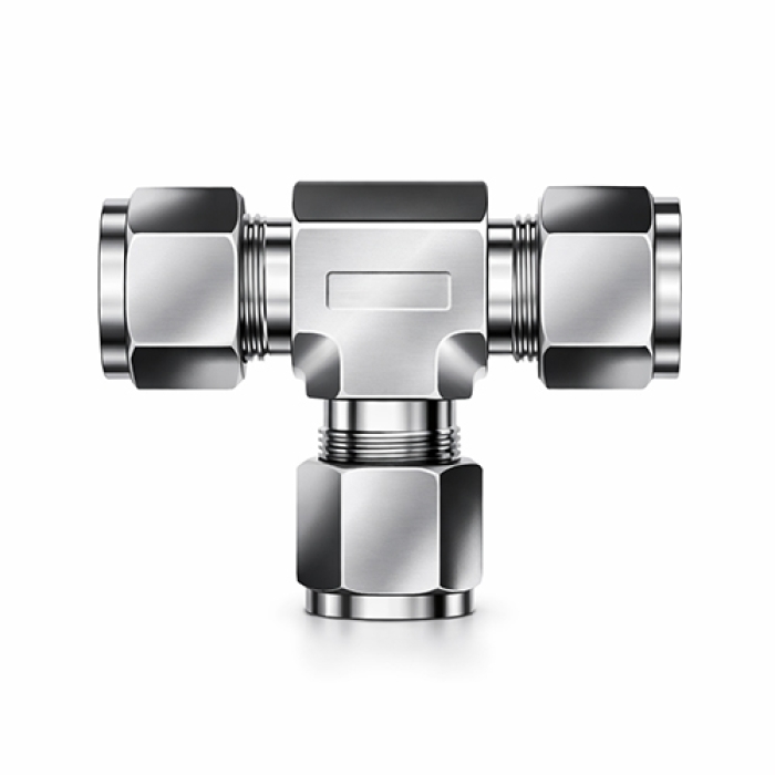 S-LOK metric union tee tube fitting for 12 mm tube OD; stainless steel.