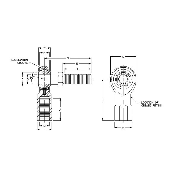 Sealmaster® 1430709000 3-Piece Commercial Grade General Purpose Bearing Rod End With Y-Stud and Zerk Grease Fitting, 7/16 in Dia Bore, 1-1/8 in OD, 5/8 in W, 5350 lb Static Load, Carbon Steel