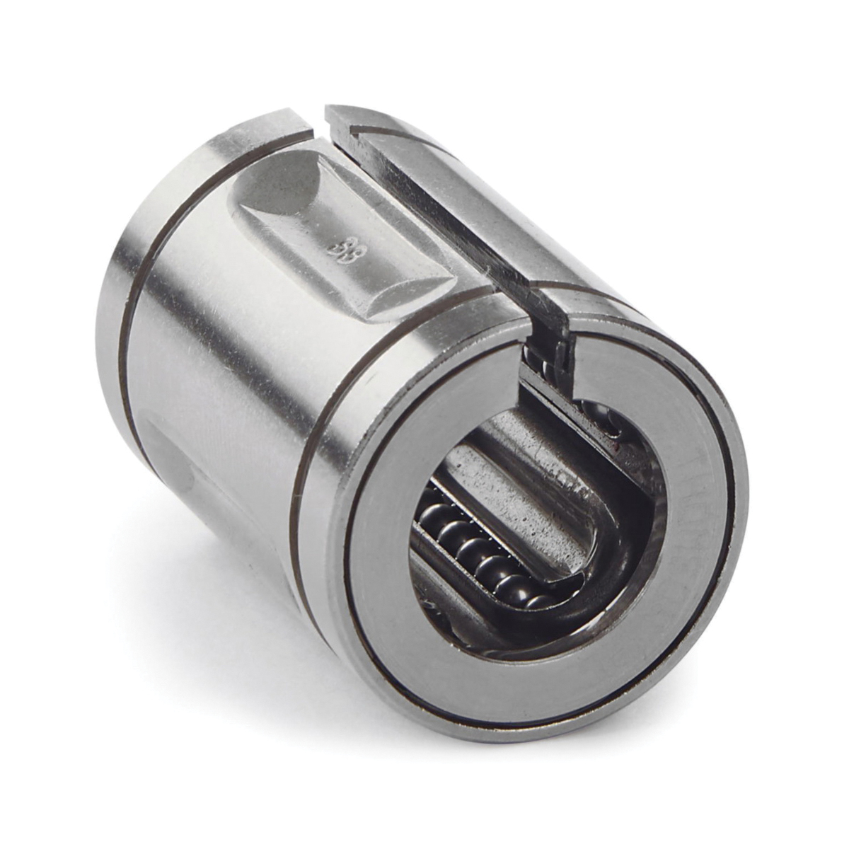 Precision Steel Ball Bushing® bearings offer great improvements in efficiency, productivity and accuracy over high-friction plain bearings flat-ways. The all-steel design makes the bearing product line perfect for replacing plain bearings in high temperature applications. Rigid construction makes them very durable compared to ball bushing bearings with polymer components. When installed in a standard Thomson® pillow block, the Precision Steel Ball Bushing® bearing can self-align up to 3 deg in all directions.
