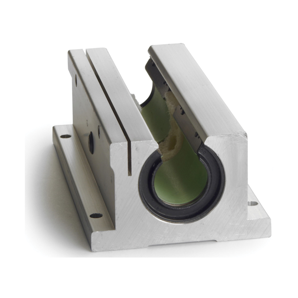 Thomson® FluoroNyliner® Bushing® FNYBUTWNO16LLS FB Series Open Twin Linear Bearing Pillow Block, 1 in Dia Shaft, 1.187 in Center Line to Base, 3-1/4 in L x 6 in W x 2 in H
