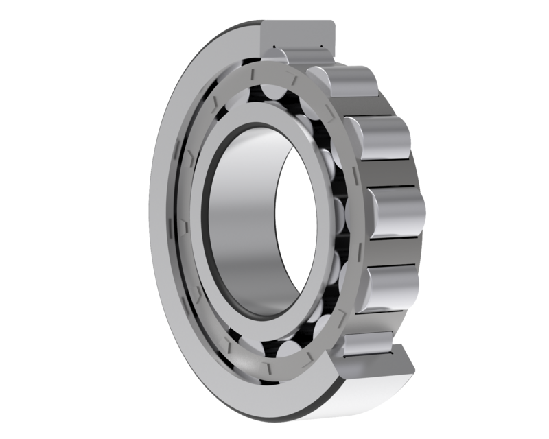 Single-row roller bearings are demountable, the ring with pilot flanges together with the cage with rollers and the second ring can be assembled separately. They are manufactured in multiple series in basic designs NU, N, NJ and NUP. The bearings feature high rigidity, low friction, the ability to transmit high radial loads and are suitable for high rpm. The bearings are supplied with standard clearance, bearings for special placing applications can be supplied either with lower or higher radial clearance. The bearings are manufactured in normal accuracy, for seating more demanding in terms of accuracy, or seating with higher rpm frequency, bearings with higher running accuracy are used. The bearings in the NU design the outer ring has two pilot flanges, the inner ring is without the pilot flanges. Axial displacement of the shaft towards the element (body) is possible in both directions. The bearings in the N design the inner ring has two pilot flanges, the outer ring is without the pilot flanges. Axial displacement of the shaft towards the element (body) is possible in both directions. The bearings in the NJ design the outer ring has two pilot flanges, the inner ring has one pilot flange. The bearing can transmit axial forces in one direction. The bearings in the NUP design the outer ring has two pilot flanges, the inner ring has one solid pilot flange and one loose flange consisting of a flange ring. The bearing can transmit axial forces in both directions.